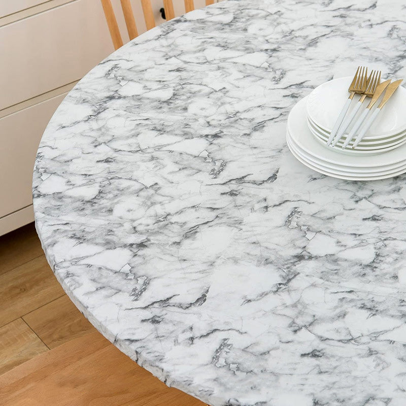 1 * Runde Tischdecke mit Marmor-Aufdruck und elastischen Kanten