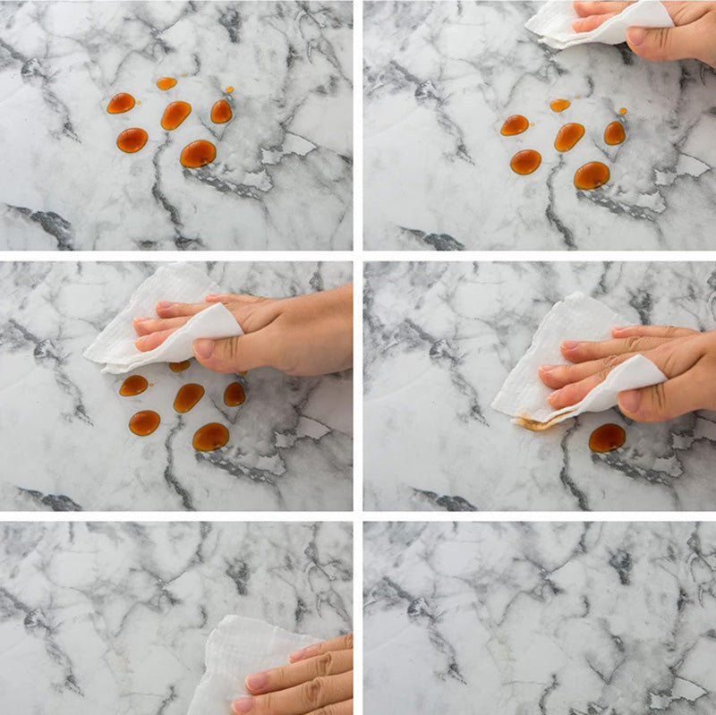 SCHÜTZENDE WEISSE FLANELLRÜCKSEITE: Die Tischdecke hat eine weiße Flanellrückseite, die Ihren schönen Tisch vor Kratzern, Spritzern und Flecken schützt. Diese Schutzschicht wirkt wie eine Barriere und hält Ihren Tisch in makellosem Zustand, während Sie das stilvolle Design der Marmordecke genießen können.