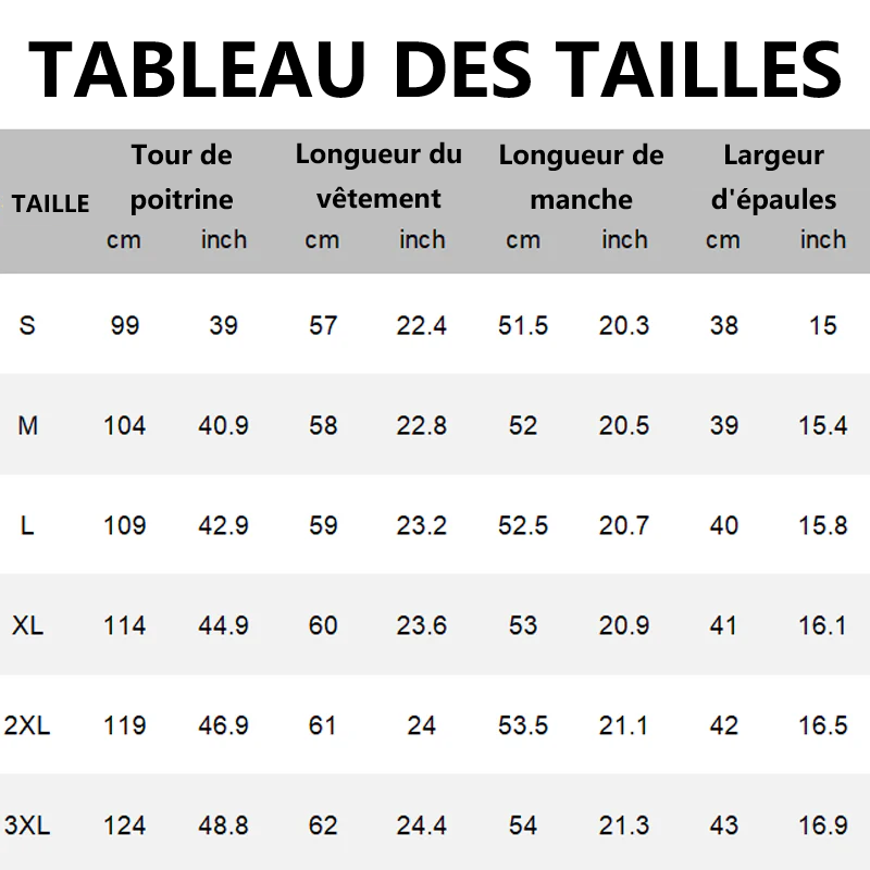 Tailles disponibles : S - 3XL